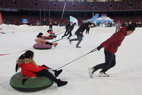 据悉,此次运动围绕着“感恩、回馈、欢喜、激情”的总基调,除了让各人体验现场的诸多冰雪项目外,还设计了雪圈赛跑、亲子呼啦圈角逐、抽奖运动等精彩环节。