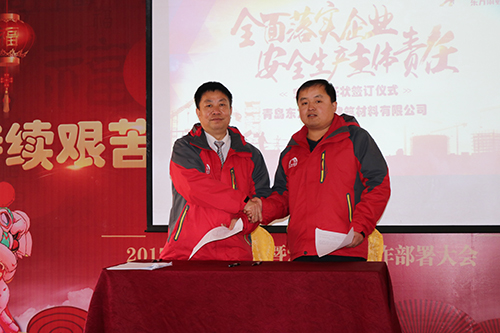 1月19日,青岛东方永利304官网唯一在生产基地内举行清静责任状签署仪式。